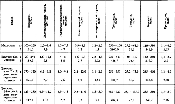 гормонов в сыворотке крови у мальчиков (Жуковский М. А. и др., 1984)